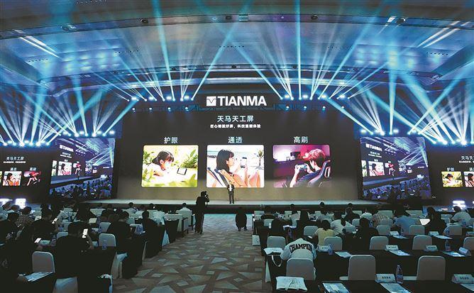 图为天马“天工屏”发布会现场。(厦门日报记者 卢剑豪 摄)